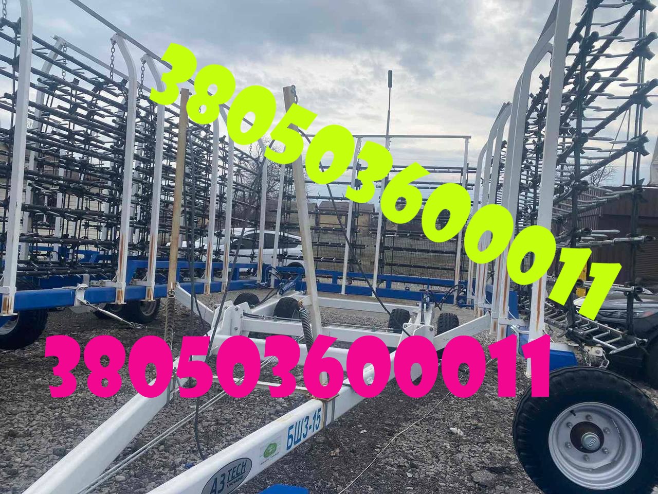 Пропонується нова шлейфова борона БШЗ-15, виготовлена з міцного металу та покрита антикорозійним захистом, що запобігає появі іржі та продовжує термін служби. Агрегат оснащений зубчастими робочими органами, з’єднаними плаваючими ланками, що забезпечує ефективний обробіток ґрунту та стабільну роботу на полі.